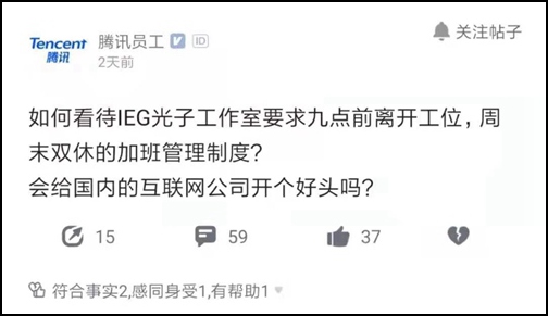近日,有騰訊員工發表了 " 如何看待光子工作室強制不加班雙休 " 的帖子,引起熱議。