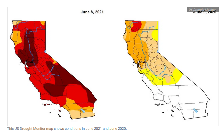 加州今年六月與去年同期的旱情對比