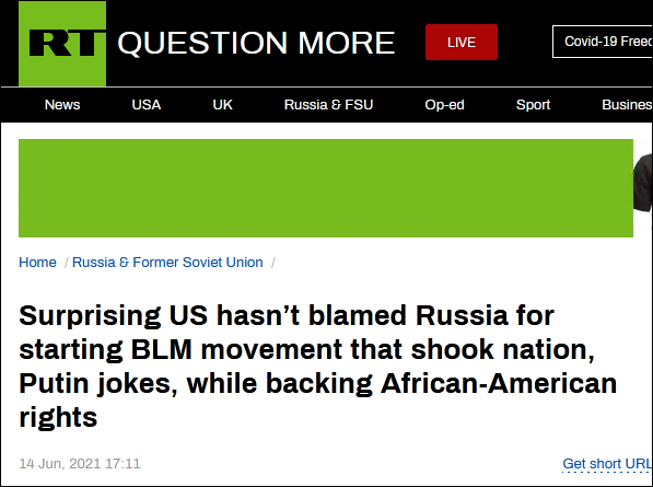 “我們還沒有被指控挑起‘黑人的命也是命’運動,我感到很驚訝,這本來是一個很好的攻擊手段。”普京諷刺地説道,他不忘補充:“我們沒幹這些事。”