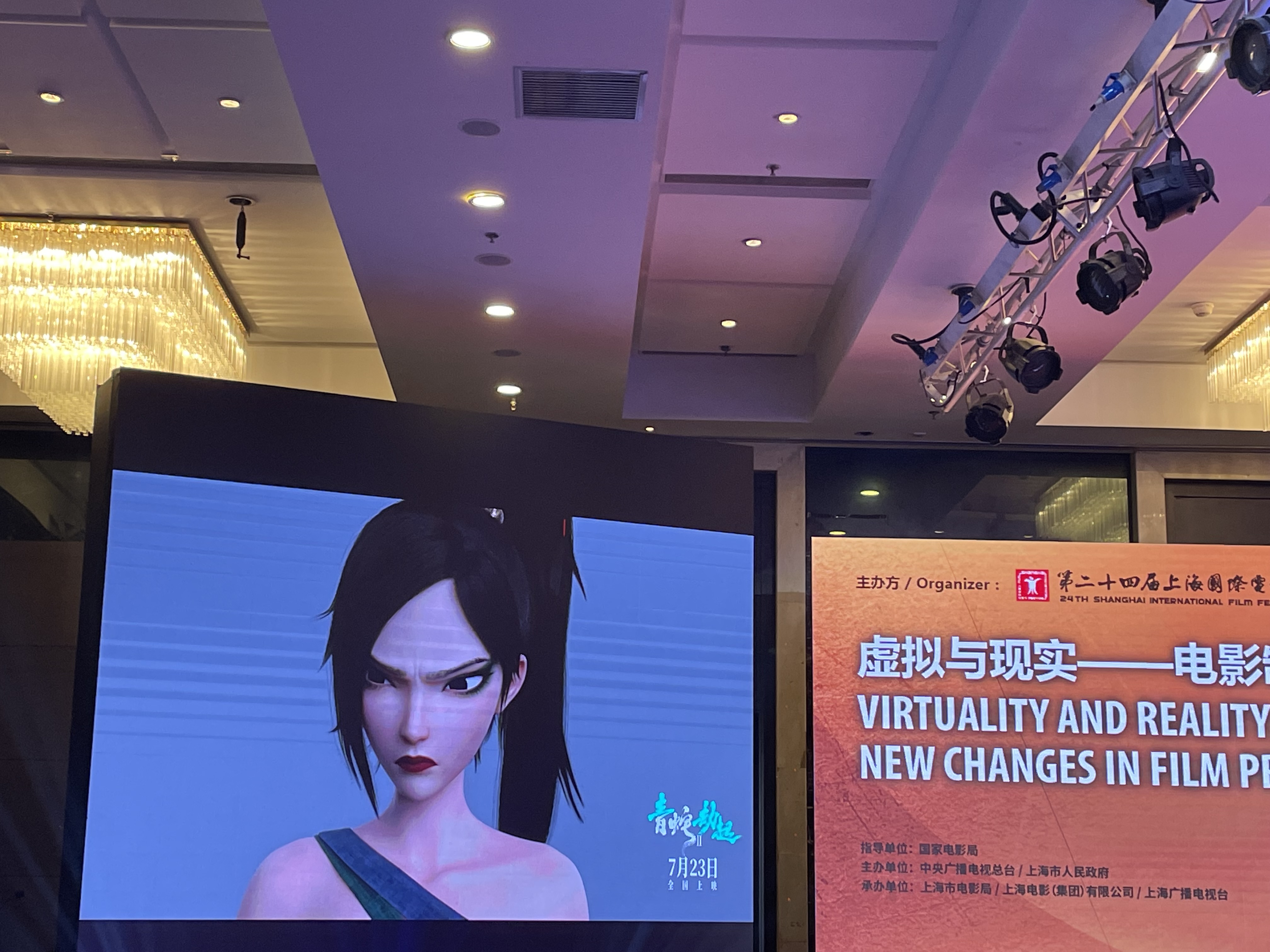 論壇現場,《白蛇1》導演黃家康自豪地拿出了即將於7月上映的電影《白蛇2:青蛇劫起》主角小青的面部表情進行展示。
