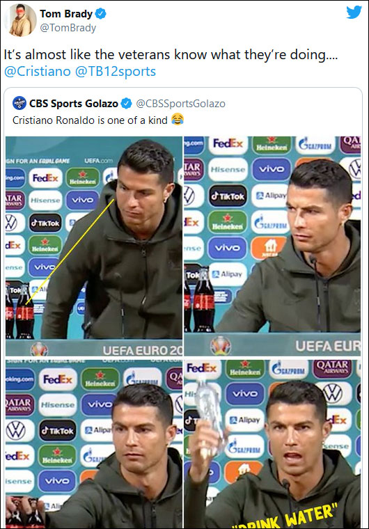 美國橄欖球傳奇四分衞湯姆布雷迪第一時間對C羅的舉動表達支持,“老兵知道他們在做什麼”。