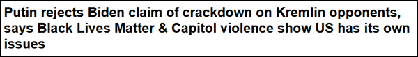 而對於普京這番直指美國人權問題的回應,拜登在隨後自己舉行的新聞發佈會上堅稱,今年1月突破警戒線闖入國會大廈的抗議者是“罪犯”,國會騷亂事件“不能與‘黑人的命也是命’運動相提並論”。他還宣稱,美國有着“悠久的在全球範圍內推廣自由的歷史”。