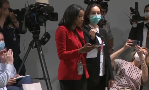 ABC記者斯科特在新聞發佈會上提問,視頻截圖(下同)