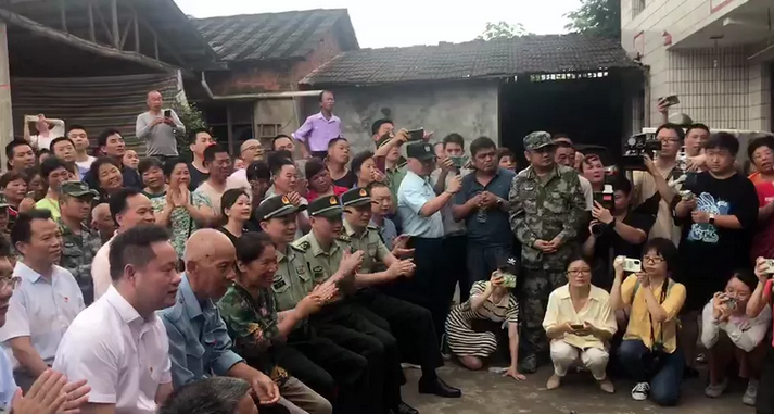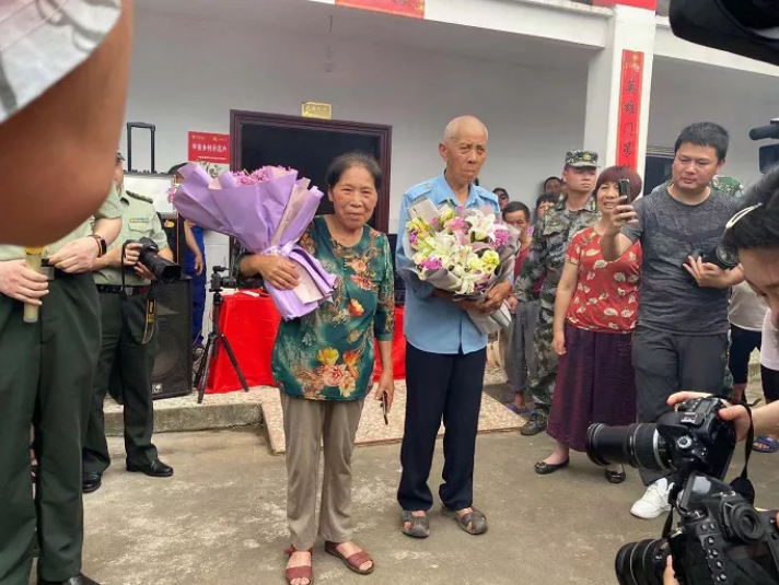 發射成功後,政府、部隊和各地鄉親們將老兩口圍了起來,一起表示祝賀。