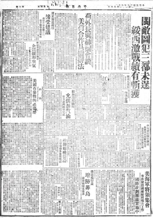 出於好奇,我查了一下慘案次日的《中央日報》第二版,標題是《閩敵圖犯三都未逞;綏西激戰續有斬獲》……