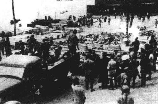 當局用卡車將屍體運至朝天門碼頭,攝於1941年6月6日