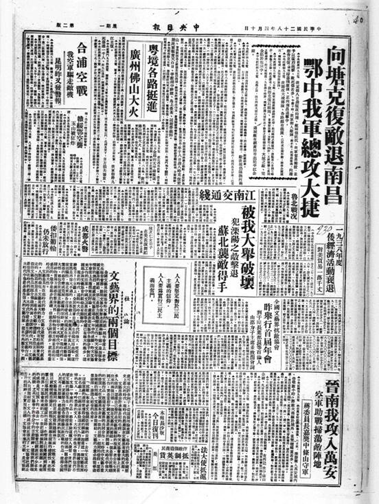 看看這些標題:《向塘克復,敵退南昌;鄂中我軍總攻大捷》《粵境各路挺進》《江南交通線被我大舉破壞;犯溧陽之敵擊退;蘇北襲敵得手》《一九三八年度倭經濟活動衰退,對美貿易一落千丈》《晉南我攻入萬安,空軍助戰掃蕩敵陣地,委員長嘉獎中條山守軍》……總之,形勢簡直好得不得了。