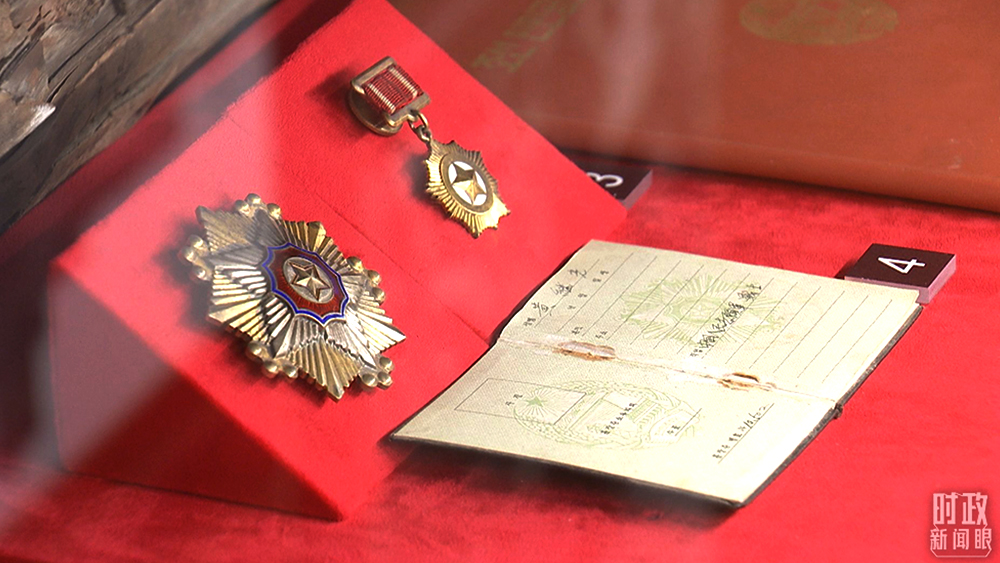 △黃繼光獲授的朝鮮民主主義人民共和國一級國旗勳章、金星獎章。(總枱央視記者李曉周拍攝)