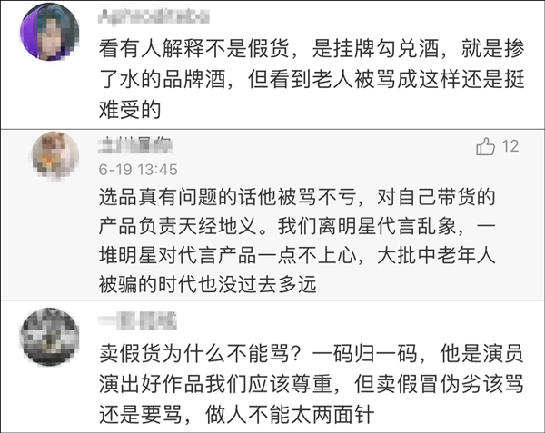 對此,很多網友留言安慰張晨光,稱無論是演戲還是直播帶貨,都是憑自己工作在賺錢,演員帶貨不是“失節”表現。不過也有人指出,張晨光被指“晚節不保”是因為他疑似在售賣貼牌白酒。截至發稿前,張晨光還未就售假爭議做出回應。