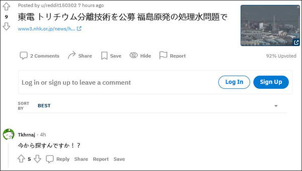 有看到NHK報道的日本網友評論説,“現在才開始找(氚分離處理技術)嗎?!”