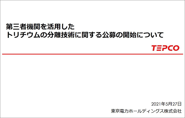 或許是考慮到這樣的“前車之鑑”,東電近日開始公開徵集“氚分離”技術。觀察者網查詢發現,今天(20日)NHK報道所指的“面向社會尋求除氚技術”的東電公告最初發佈於5月27日。