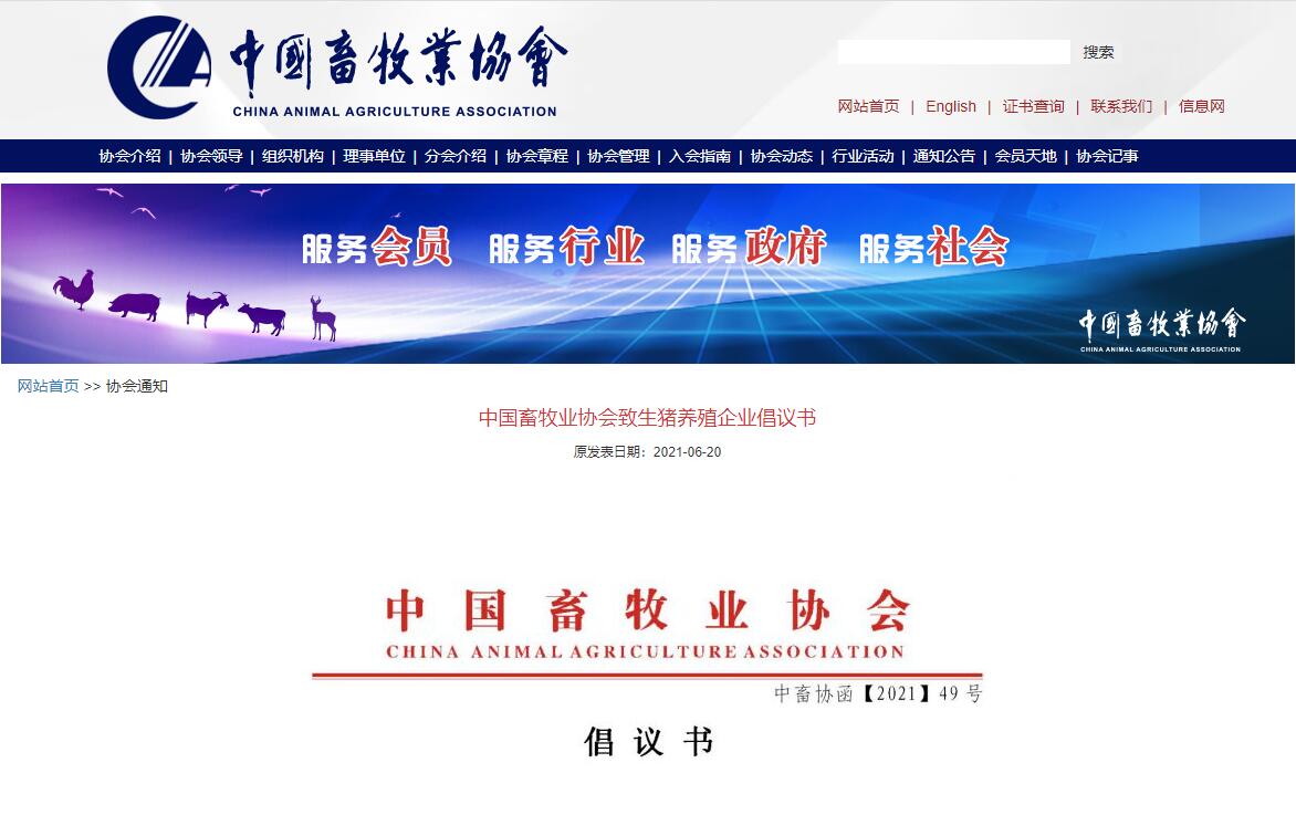 在此,中國畜牧業協會發出如下倡議: