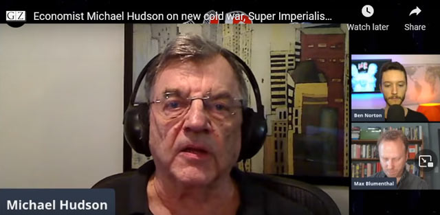 **邁克爾·赫德森:**聽到你説金融資本主義表現不佳,我感到很震驚。自從新冠肺炎疫情危機開始以來,前1%的人已經賺了一萬億美元。新冠肺炎疫情危機是最好的賺錢機會,這是金融資本主義的大豐收;對於他們來説疫情很美妙,因為他們正在摧毀經濟的同時把利益都塞進了自己的腰包。
