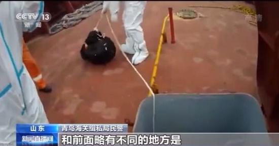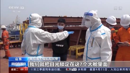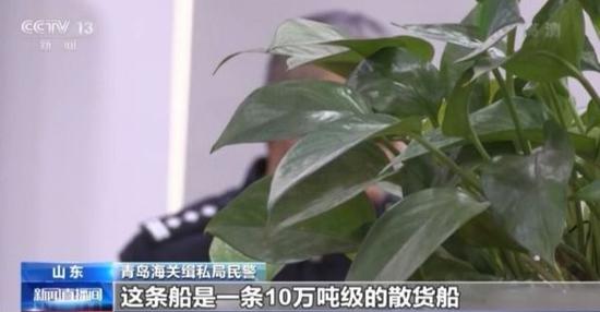 **青島海關緝私局民警:**這條船是一條10萬噸級的散貨船,船長229米,船上有21名船員。船員來自不同的國家,有土耳其的、印度的、菲律賓的,成分非常複雜。