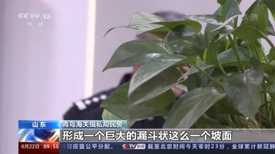 **青島海關緝私局民警:**因為艙室大豆卸到一半的時候,形成一個巨大的漏斗狀的一個坡面,周邊的大豆不斷地往下滑落,和雪崩之前的狀態非常相像。所以説下去提取物品確實有很大的危險性。