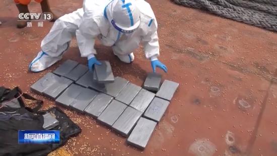 在裝載大豆的7號貨艙裏發現可疑包裹,後經現場初步檢測,這些包裹裏的可疑物品均為毒品可卡因。這些毒品的查獲,驗證了專案組對該船藏毒方式的最初判斷,也堅定了他們對所有貨艙一查到底的決心。