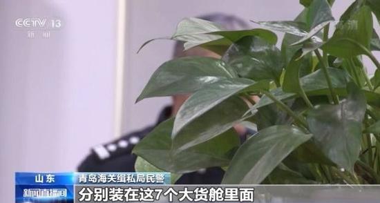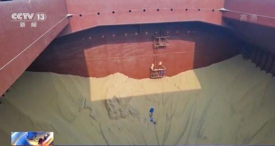 **青島海關緝私局民警:**大約是6.7萬餘噸,分別裝在這7個大貨艙裏面,也就是一個貨艙將近裝了1萬噸大豆。