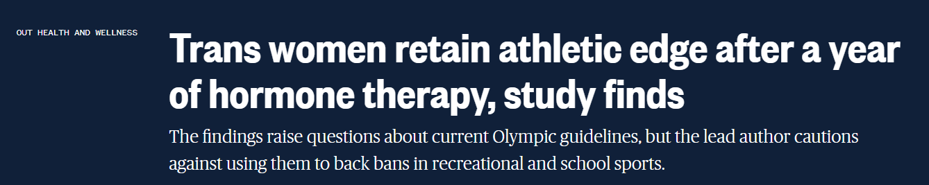 美國全國廣播公司:“研究發現,經過一年激素治療後,跨性別女性仍有運動優勢”