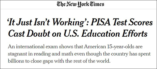 美國《紐約時報》19年曾刊文刊文稱“美國15歲青少年閲讀和和數學能力不達標” 圖自紐約時報網站