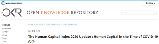 世界銀行發佈的研究《2020 年人力資本指數更新:新冠疫情時代的人力資本》 圖自世界銀行網站