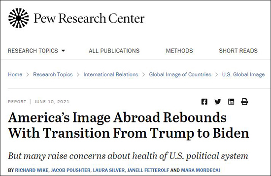 皮尤研究中心稱“拜登上台以來,美國的海外形象有所反彈” 圖自皮尤研究中心網站