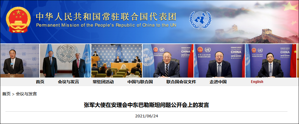 據中國常駐聯合國代表團網站6月24日消息,張軍大使在安理會中東巴勒斯坦問題公開會上發言,內容如下: