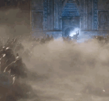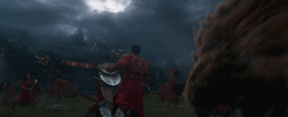 同樣還有的是,混戰場面裏一閃而過的“石獅子”(foo dogs)軍團。