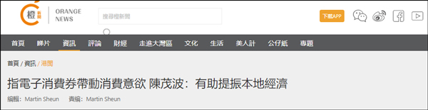 陳茂波表示,電子消費券計劃細節公佈後,特區政府、儲值支付工具營運商或商户,都積極解説或推廣優惠,預計這種正向氣氛將帶動消費意欲,有助發揮乘數效應,提振本地經濟。