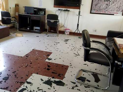 爆炸破壞了一棟建築物的屋頂,圖自印媒