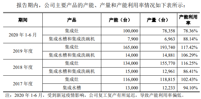 從產能上看,火星人集成灶產能利用率在2017-2019年分別達到102%、116%、117%。產能成為了制約其發展的一大因素。