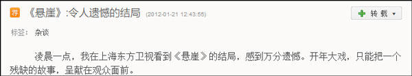 全勇先博客《懸崖:令人遺憾的結局》文章截圖