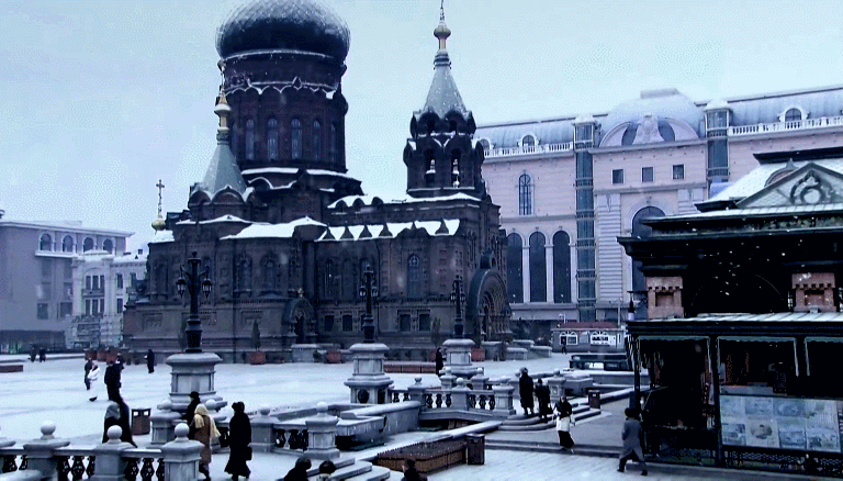 大教堂、街道上的洋人和古樹、略帶坡度的街景,都成了“偽滿洲國”時期哈爾濱特殊風貌的寫照。
