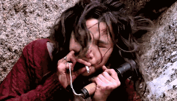 顧秋妍縮在巖縫裏抽煙取暖,拉着手榴彈做好犧牲準備的一幕,貢獻了這部戲她推翻質疑的最佳表演。