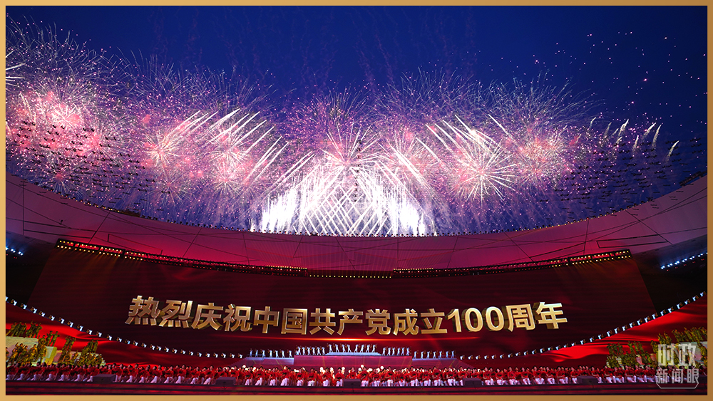 情景交響歌舞《人民至上》,再現舉國動員、全民戰“疫”。鼓樂歌舞節目《新的天地》,一百面空中大鼓與地面巨型大鼓遙相呼應。在主題曲《領航》的旋律中,高達16米的金色黨徽在國家體育場莊嚴升起。演出過程中,絢爛的焰火一次次盛放在國家體育場上空,並迅速在網上引發刷屏。