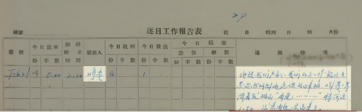 這份電台《逐日工作報告表》,清晰記錄了李白烈士被捕當晚,中央情報部電台與李白電台“峯台”的最後通聯情況——