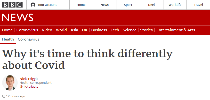 針對此次解封和隨之而來的外界激烈爭論,BBC健康條線通訊員尼克·特里格(Nick Triggle)以“為什麼是時候改變對新冠病毒的看法了”為標題,發表了它們的觀點和看法。
