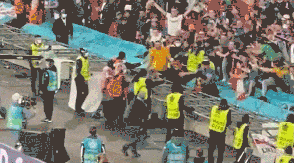 北京時間7月7日,歐洲盃半決賽,倫敦温布利球場見證了意大利點球淘汰西班牙晉級決賽的歷史性一刻,賽後意大利球員博努奇衝出場外和球迷慶祝,結果折返時被工作人員誤當成球迷,讓他趕緊回看台。這一幕被英國小報《每日郵報》浮誇地稱為“2020歐洲盃最尷尬的時刻之一”。