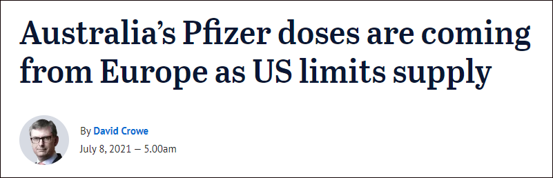 澳媒:澳大利亞急需輝瑞疫苗,美國卻繼續限制出口