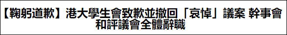 “哀悼”刺警疑兇?港大學生會鞠躬道歉、評議會及幹事會全體辭職