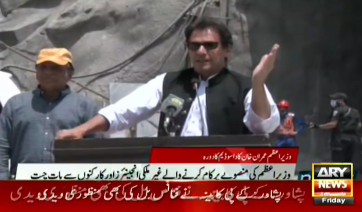 6月18日,巴基斯坦總理伊姆蘭·汗參觀達蘇水電站項目現場,並在大壩進水隧洞口發表講話。