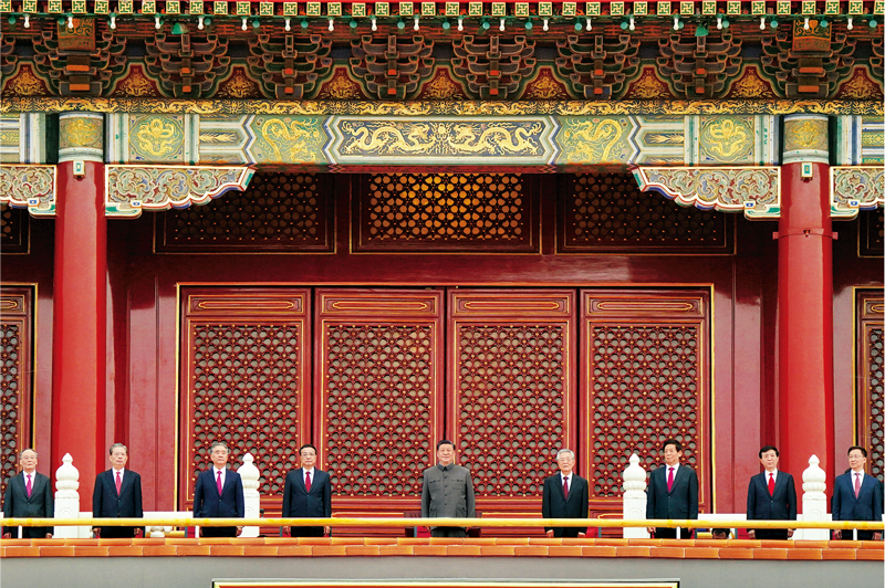 2021年7月1日,慶祝中國共產黨成立100週年大會在北京天安門廣場隆重舉行。習近平、李克強、慄戰書、汪洋、王滬寧、趙樂際、韓正、王岐山、胡錦濤等出席大會。 新華社記者殷博古/攝