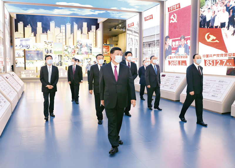 2021年6月18日,黨和國家領導人習近平、李克強、慄戰書、汪洋、王滬寧、趙樂際、韓正、王岐山等在中國共產黨歷史展覽館參觀“‘不忘初心、牢記使命’中國共產黨歷史展覽”。 新華社記者鞠鵬/攝