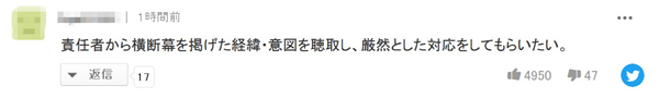 “希望能從負責人那裏聽取懸掛橫幅的經過和意圖,做出嚴肅應對。”