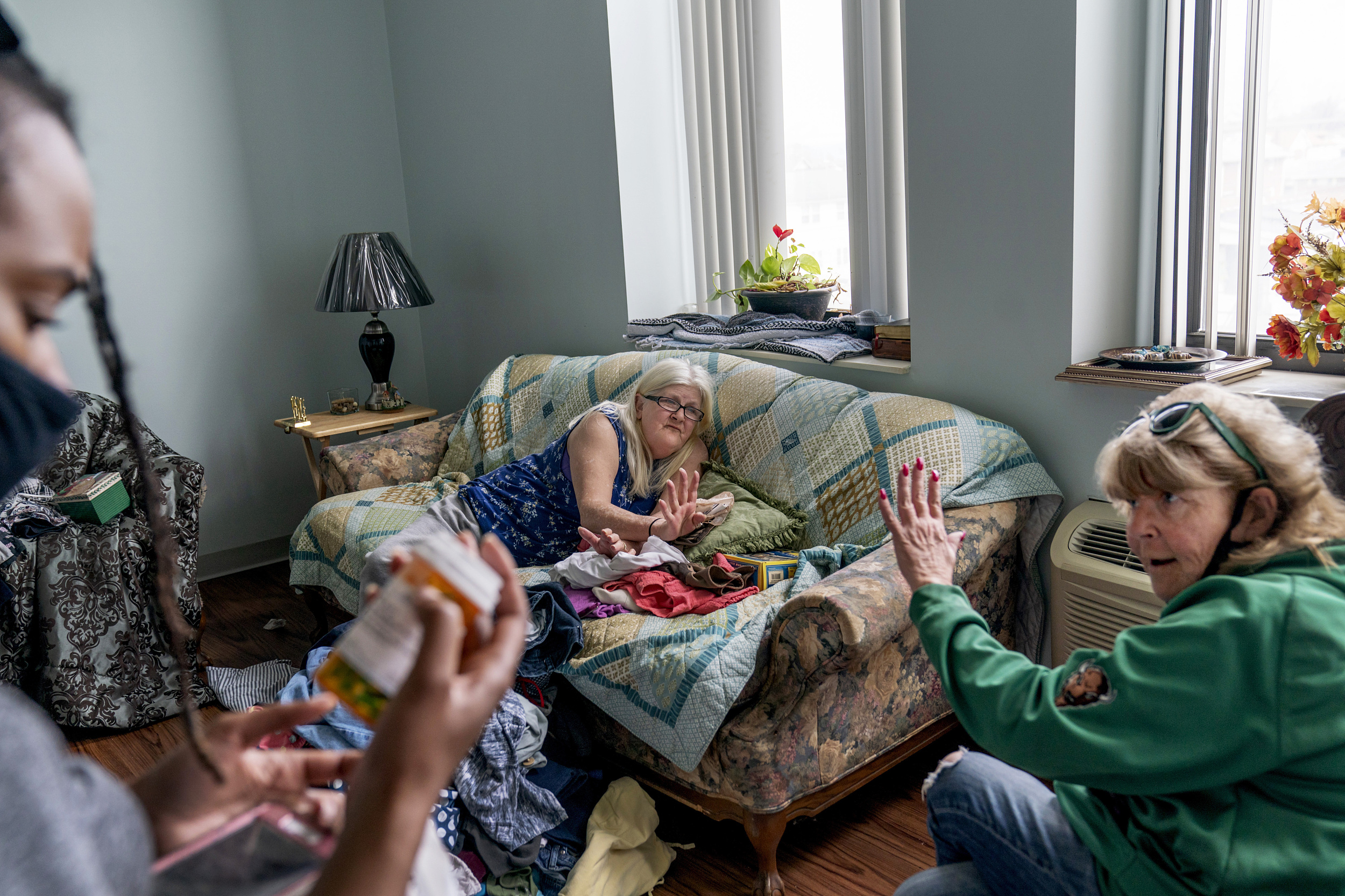 2021年3月17日,美國西弗吉尼亞州亨廷頓,工作人員正在檢查居民家中藥物 圖源:視覺中國
