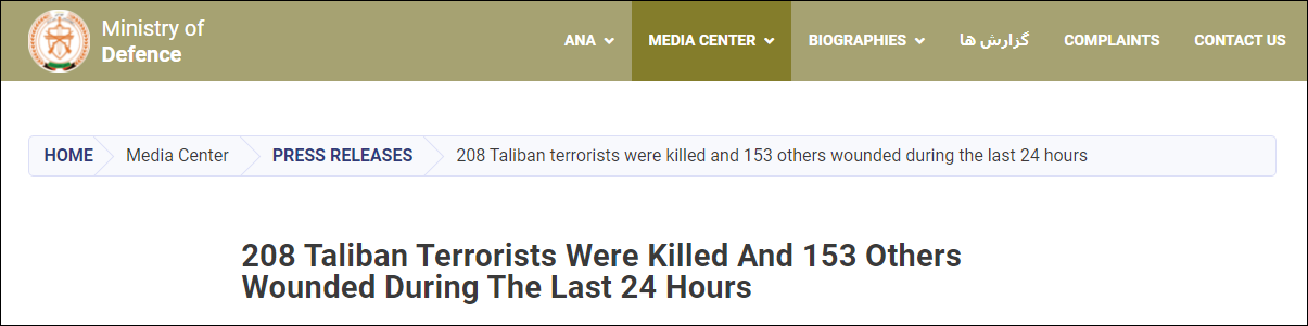 阿富汗國防部網站截圖