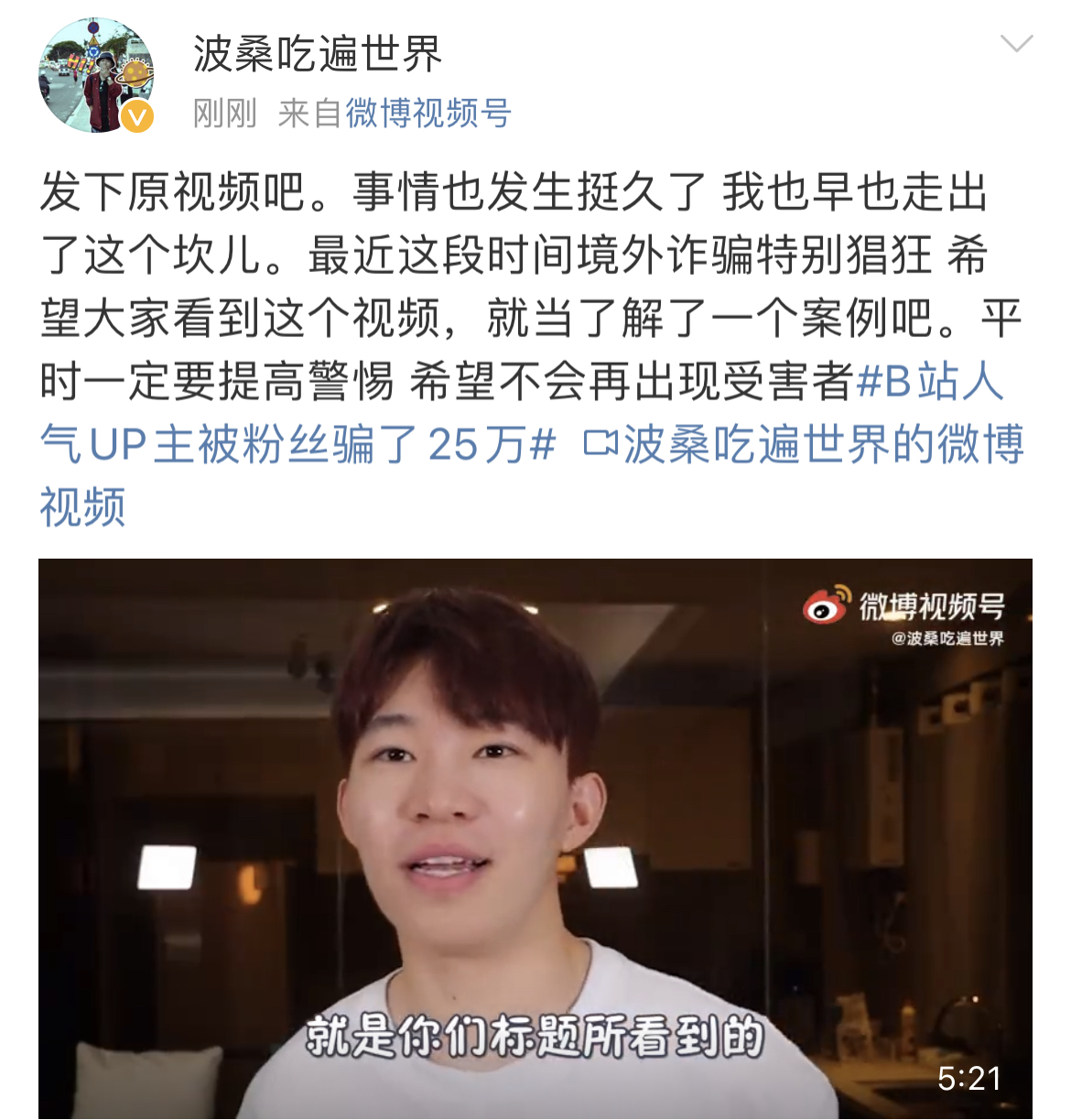 今天波桑的這段被騙經歷火上了微博熱搜首位,引起網友熱議。他也在微博再次回應此事,希望更多網友看了視頻後能夠提高警惕,不要再出現受害者。