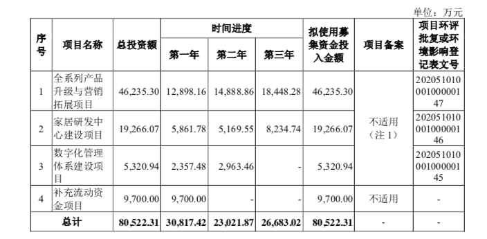 值得一提的是,與此前每年僅有600餘萬元用於研發形成鮮明對比的是,本次申請上市募得資金中將有1.9億元用於建設家居研發中心。此行為也被監管部門關注,深交所下發問詢函,要求該公司補充披露家居研發中心建設項目中研發費用金額的合理性、必要性和可行性。
