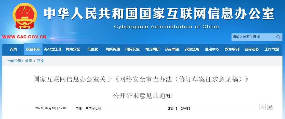 但是在7月10日,國家網信辦在《網絡安全審查辦法(修訂草案徵求意見稿)》第六條中規定: