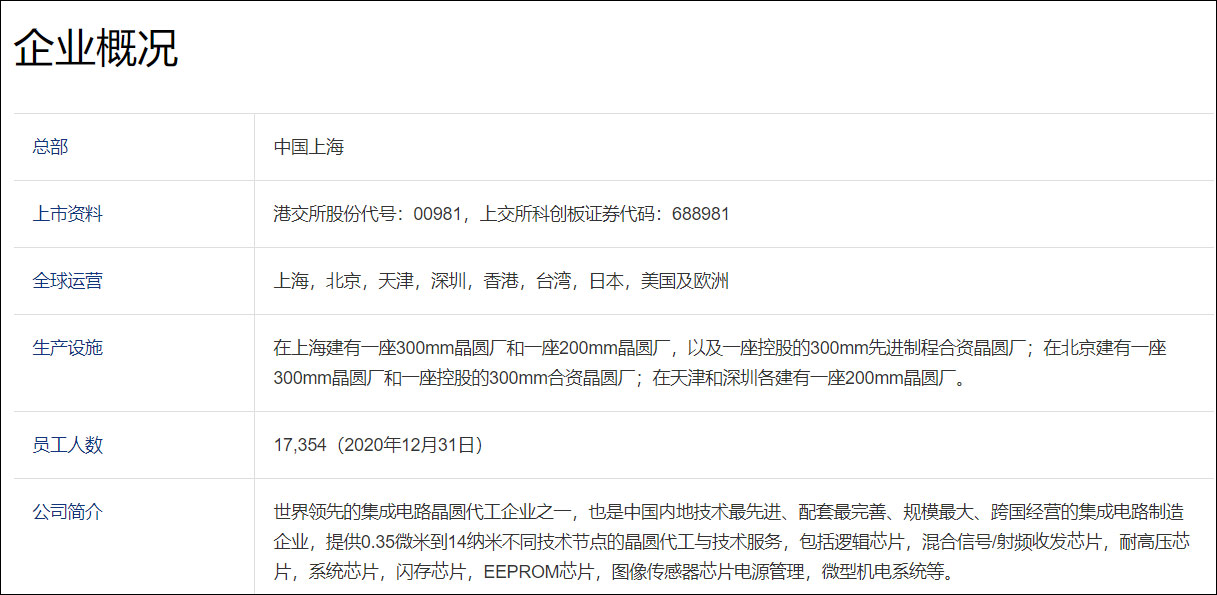 官網介紹,中芯國際是全球領先的集成電路晶圓代工企業之一,也是中國大陸技術最先進、規模最大、配套服務最完善、跨國經營的專業晶圓代工企業。根據IC Insights發佈的2020年純晶圓代工行業全球市場銷售額排名,中芯國際位居全球第四位,在中國大陸企業中排名第一。