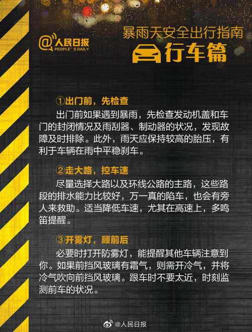 21日凌晨,@人民日報 發佈“暴雨天安全避險指南”,分為“步行篇”、“行車篇”、“如何應對”和“小科普”。